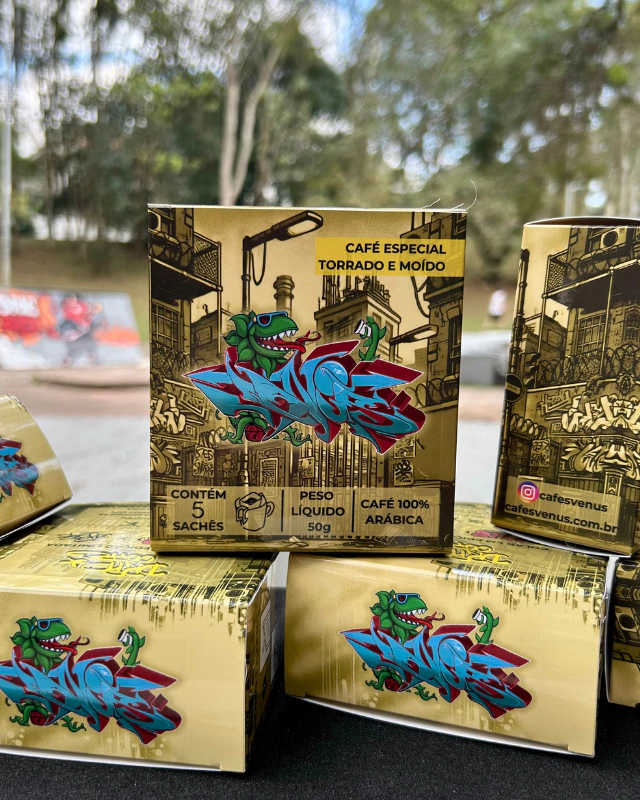 E claro, nós somos a Venus, então não seria qualquer drip. Em colab com o artista urbano Gabriel Veiz, nasceu uma embalagem em edição limitada cheia de arte.